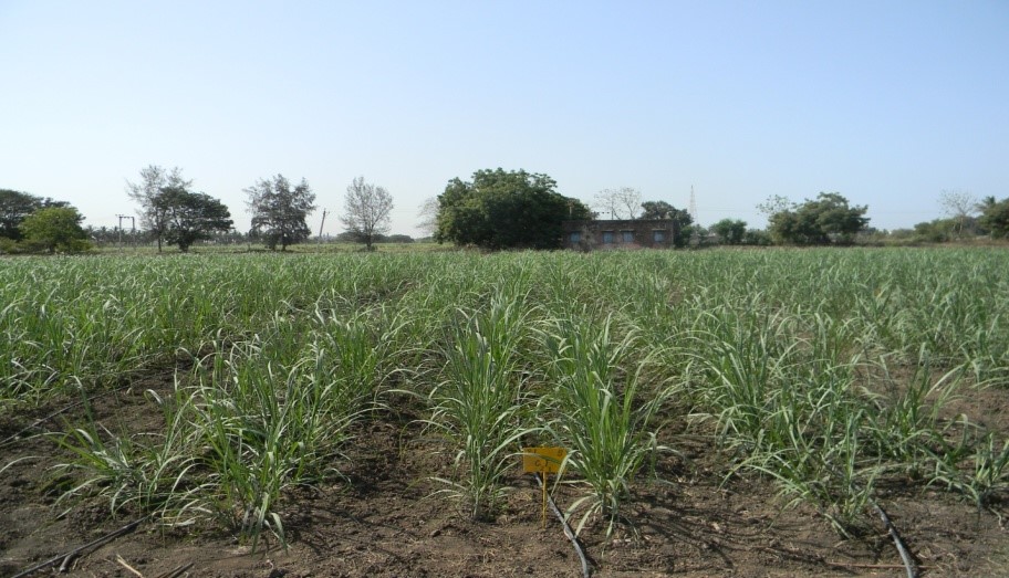 - શેરડીના પાકમાં ટપક પધ્ધતિ અપનાવવાથી પાણીનો બચાવ થાય છે અને ખાતરની કાર્યક્ષમતા વધે છે. ટપક પધ્ધતિથી પિયત આપવા માટે શેરડીની રોપણી જોડિયા હાર પધ્ધતિમાં (૬૦ : ૯૦ :૬૦ સે.મી.) કરવી અને દરેક જોડિયા હાર વચ્ચે લેટરલ ગોઠવી પાકને પિયત આપવું.